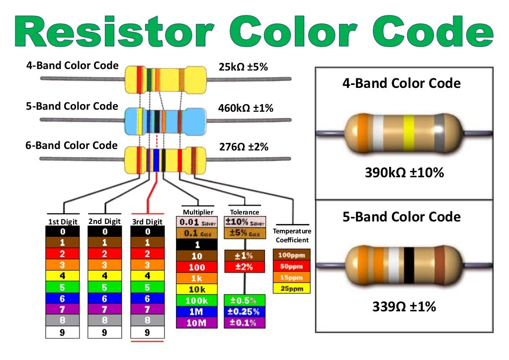 Quick reference guides on reading and decoding 4-band, 4, 5 and 6-band, and “dogbone” resistors are immediately below. Click on any of the images for more information from wjoe.com.
